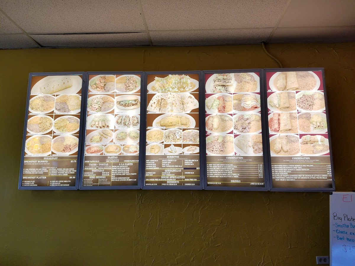 Azada,carnitas,adobada with pico and guacamole Chicken,beef,groudbeef with lettuce cheese
